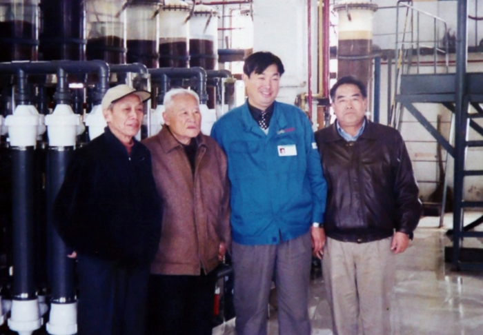 時光回到2000年的3月的一天,春寒料峭乍暖還寒,91歲高齡的曾院士邁著穩健步子,在黃海水產研究所科研人員的陪同下來到明月海藻集團老廠區,張國防董事長陪同調研考察碘醇車間。碘醇車間是利用海帶浸泡水制取碘和甘露醇的一條生產線,曾院士邊看邊詢問工藝技術改造情況,并提出了一些意見和建議。