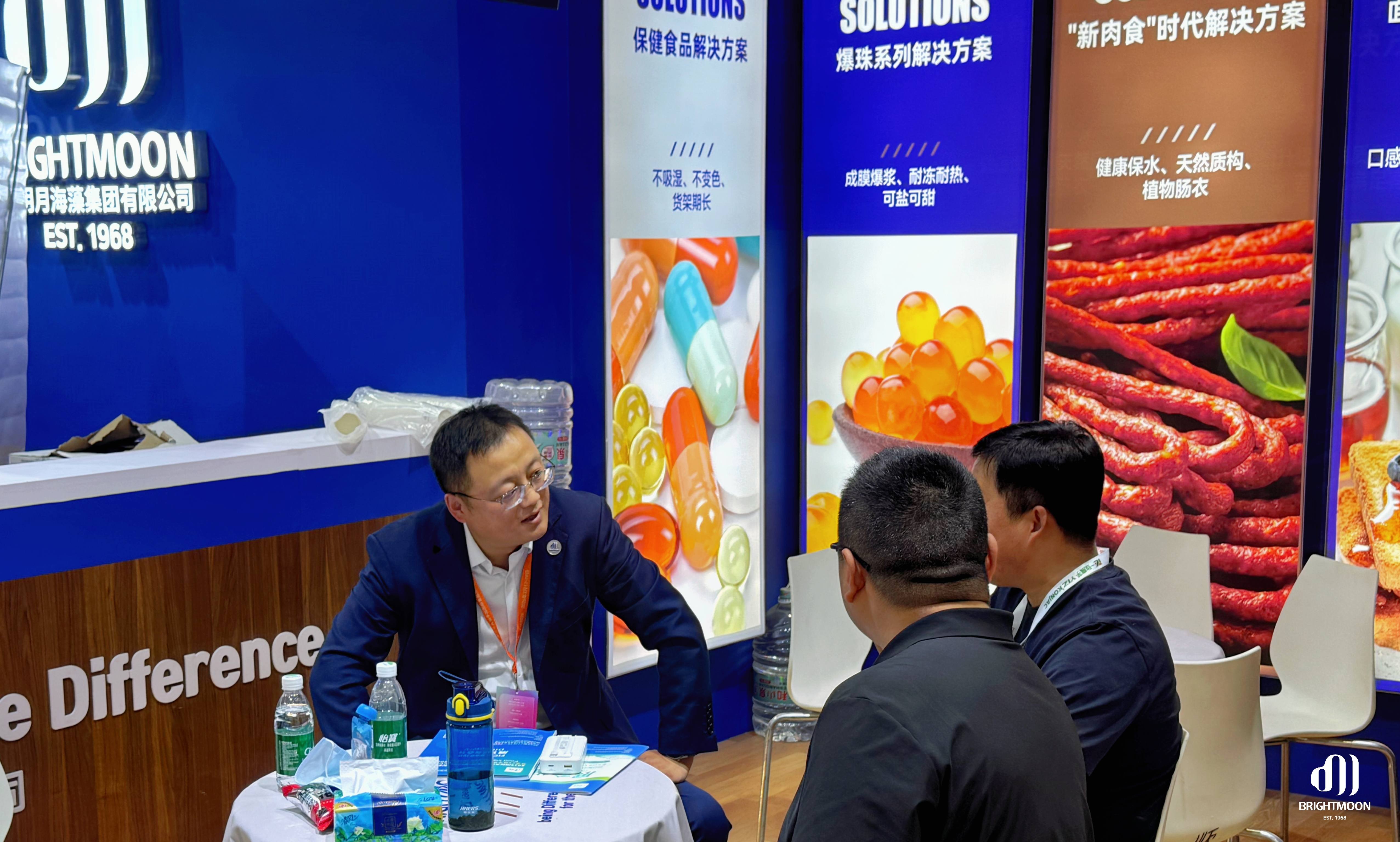 展會期間,明月展位始終熱度不減。專業(yè)團(tuán)隊(duì)以產(chǎn)品展示、技術(shù)交流和場景化示范,向現(xiàn)場觀眾集中呈現(xiàn)“海藻功能原料×食品創(chuàng)新”的前沿趨勢,吸引了大量行業(yè)伙伴駐足探討,共同尋找下一代食品創(chuàng)新方向。