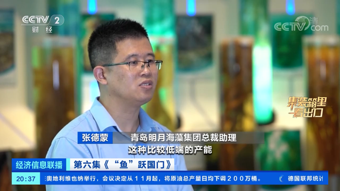 10月6日20:30,CCTV-2財經頻道《經濟信息聯播》欄目推出了“集裝箱里看出口”系列報道——走進明月海藻集團,重點報道明月海藻集團作為全球海藻生物制品行業領先企業,堅持創新賦能和破局發展的奮斗成果。