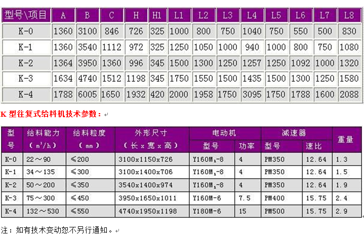 K型往復式給料機是由機架、底板(給料槽)傳動平臺、漏斗閘門、托輥等組成。其傳動原理:當電動機開動后,經彈性聯軸器、減速器、曲柄連軒機構拖動傾斜的底板在插輥上作直線往復運動,將煤均勻地卸到運輸機械或其它篩選設備上。該機設有帶漏斗、帶調節閥門和不帶漏斗、不帶調節閥門兩種形式。