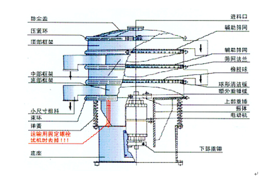 振動篩分過濾機的基本原理系電機上下端所安裝的重錘(不平衡重錘),將電機的運動轉變為水平、垂直傾斜的三次元運動 , 再把這個運動傳遞給網面。改變電機上下重錘的相位角可以改變原料的運動方向。