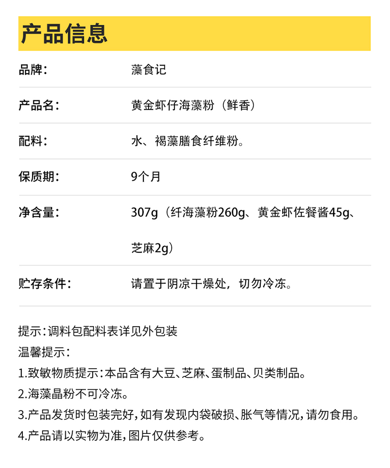 307g(纖海藻粉260g、黃金蝦佐餐醬45g、芝麻2g)